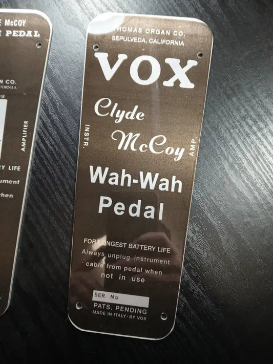 VOX Clyde McCoy 60's Brushed Aluminum WAH-WAH Pedal Bottom Plate or Script Version or Picture Version