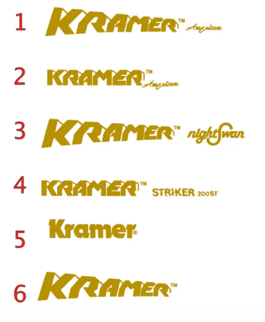 Kramer EVH 5150, Pacer, Voyager, Vanguard, Floyd Rose, Striker or Elliot Easton Guitar Headstock Decal Logo Waterslide