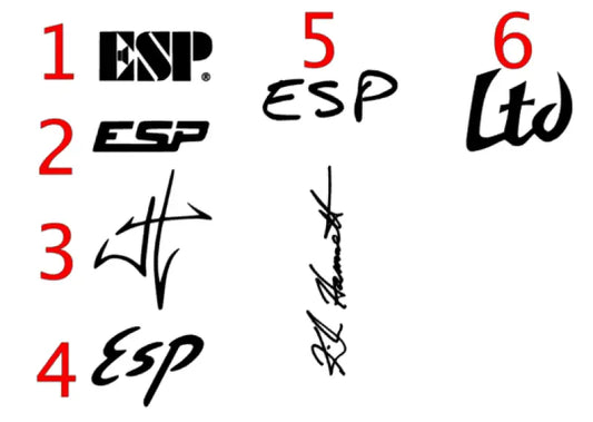 ESP and LTD Guitar Headstock Logo Decals Waterslide, Vinyl or Foil Hammett & Hetfield