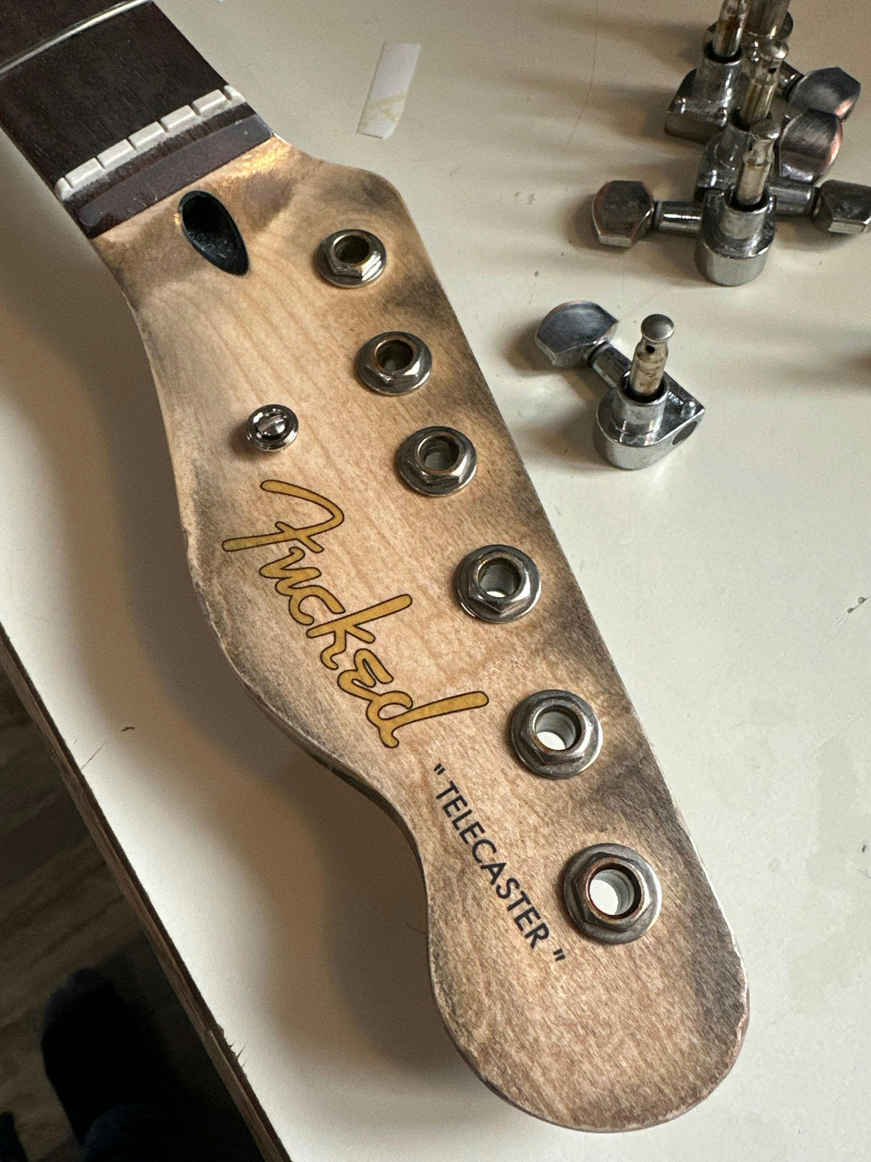 Fender Parody Fucked Funny Clone Headstock Decals Partscaster Stratocaster, Telecaster, Jazzmaster, Jazz Bass, & Precision Bass