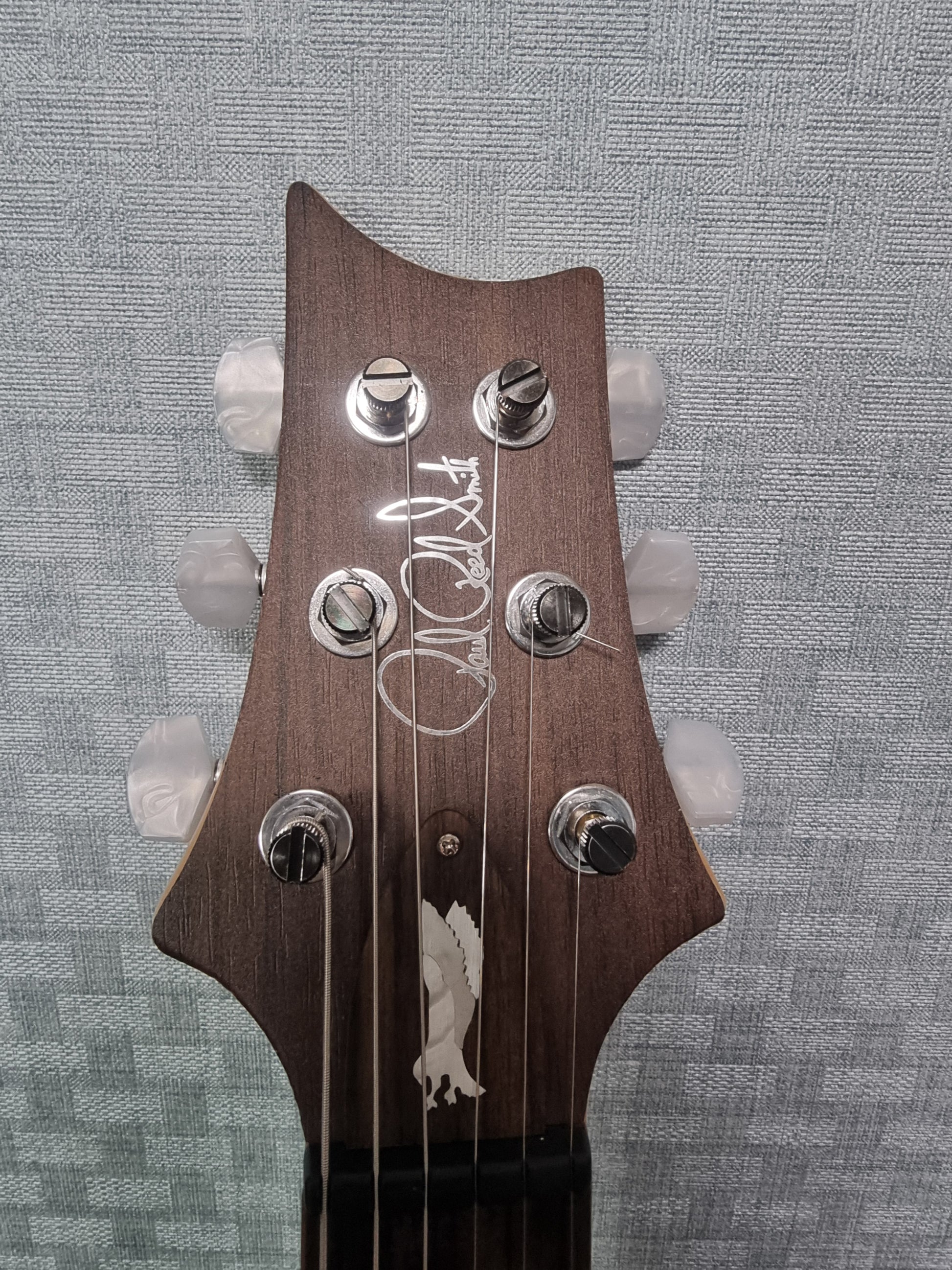 Paul Reed Smith PRS SE Guitar Headstock Decal Logo Complete Vinyl Overlay. Rosewood grain Vinyl with Gold Foil Logo. Thank you